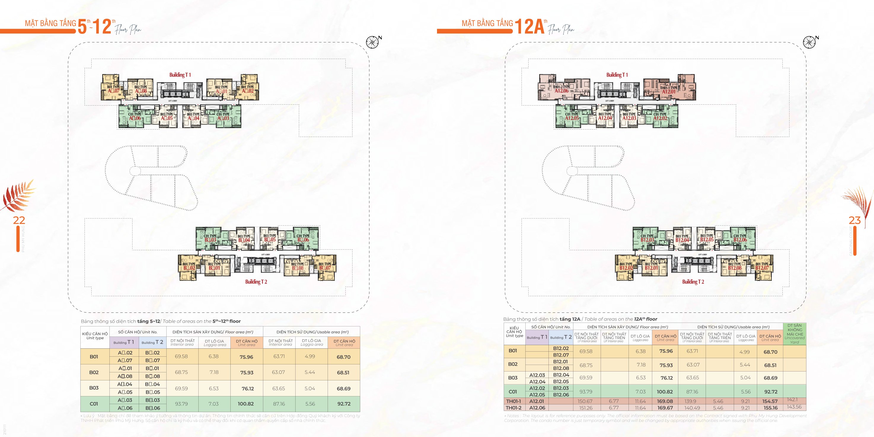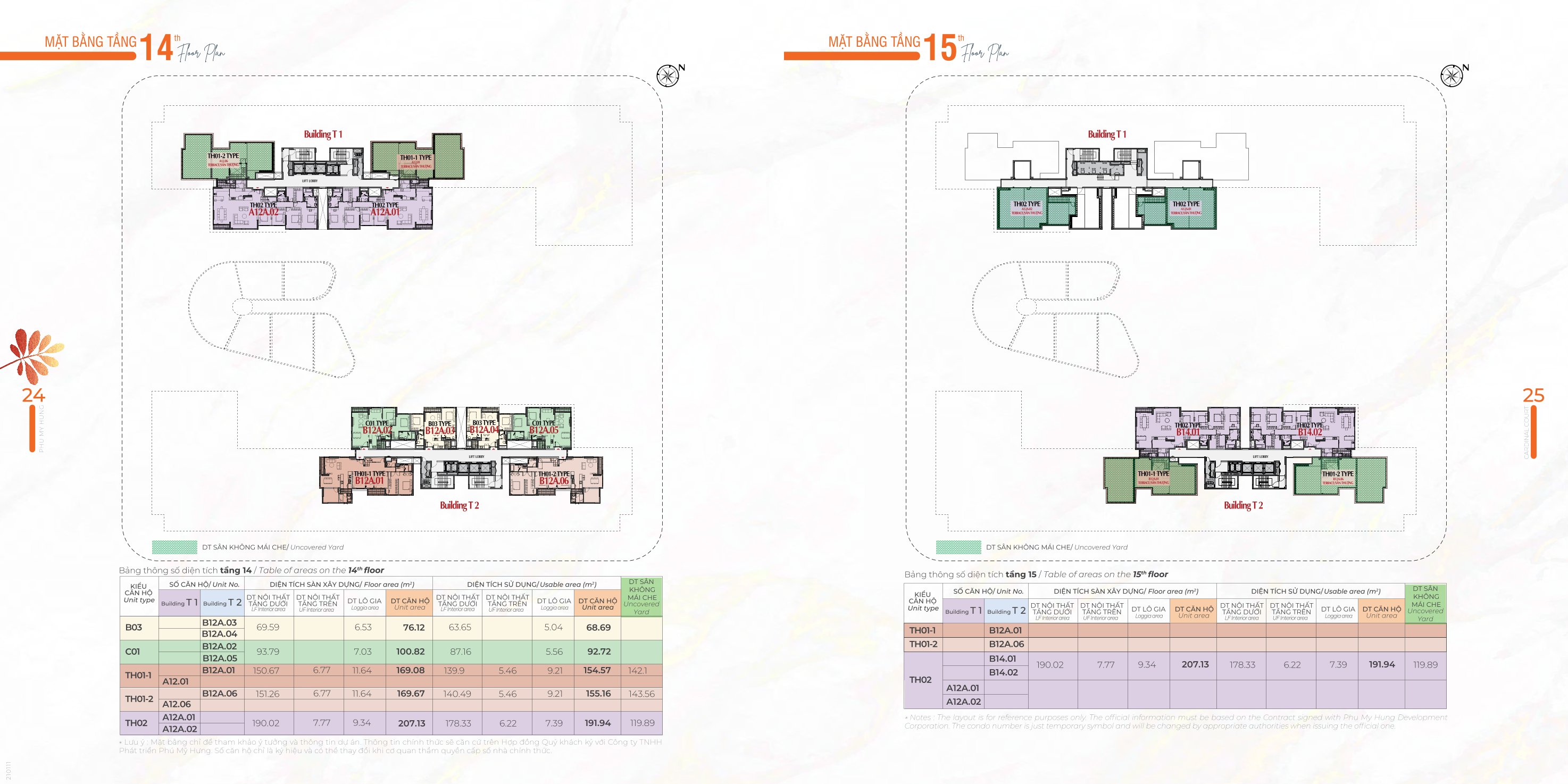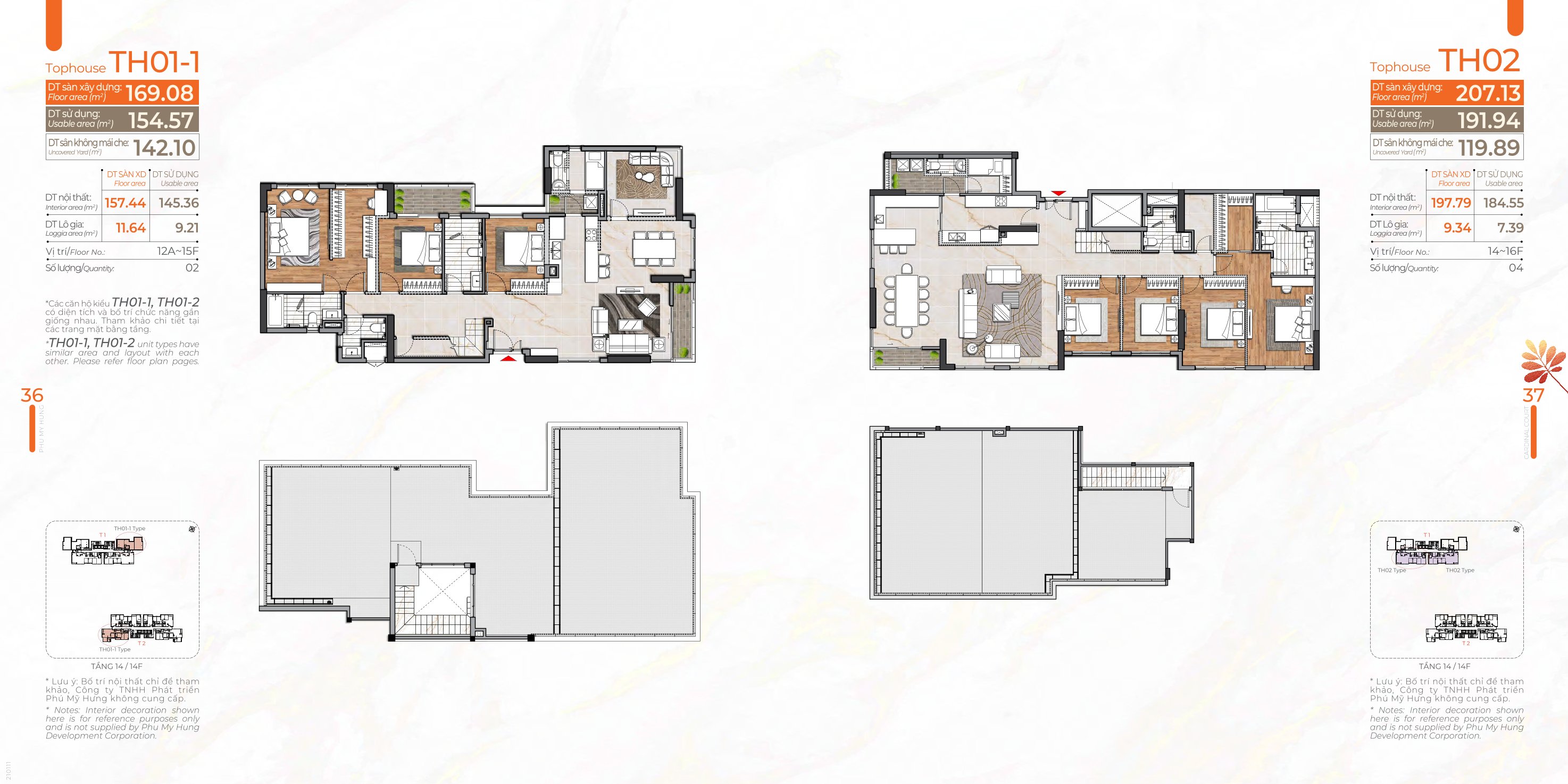 - Tophouse/Penthouse: 8 căn, diện tích từ 169,08m² – 207,13m².