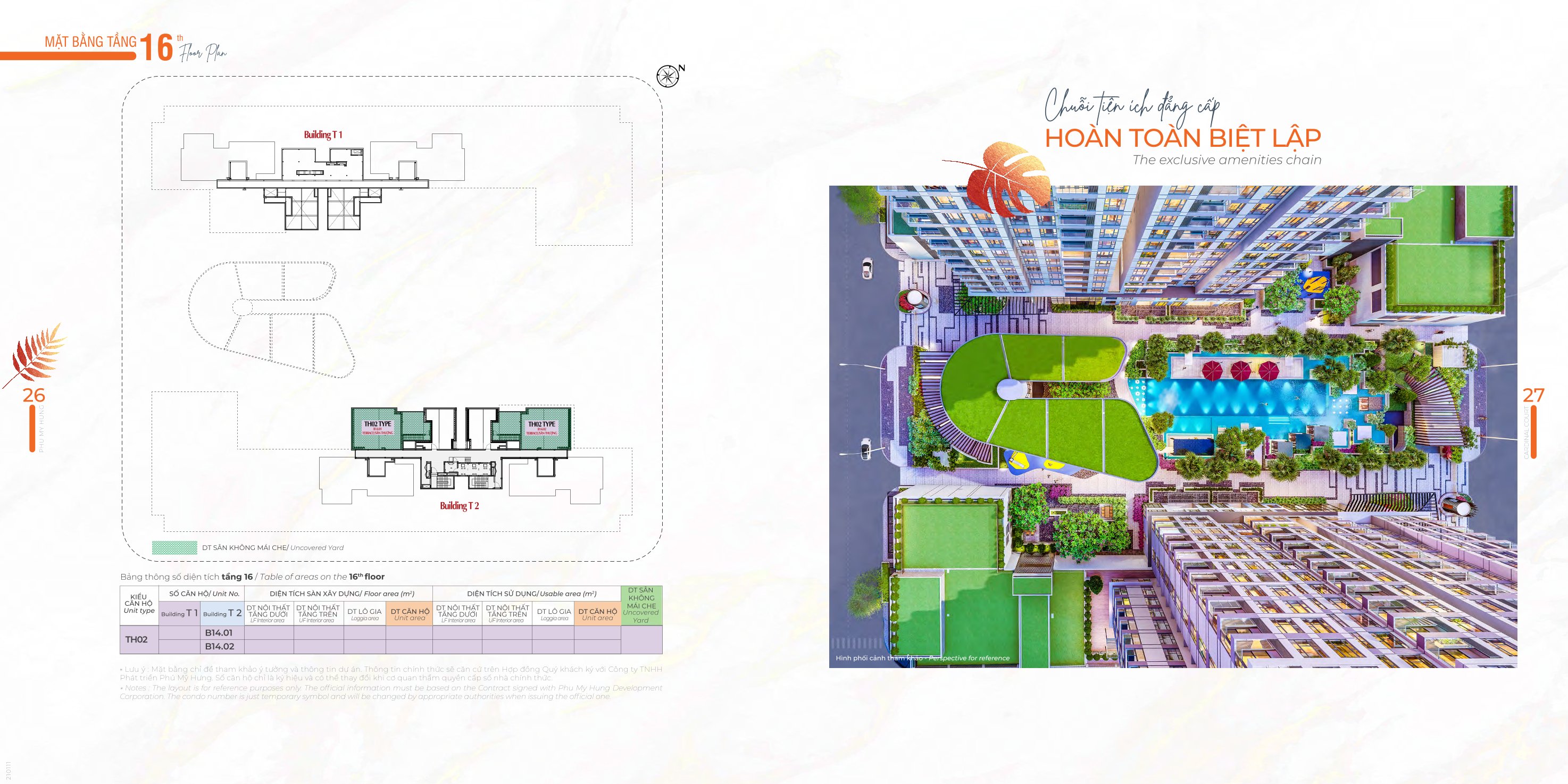 - Cấu trúc: 2 Tháp (Khối T1 cao 15 tầng, Khối T2 cao 16 tầng).