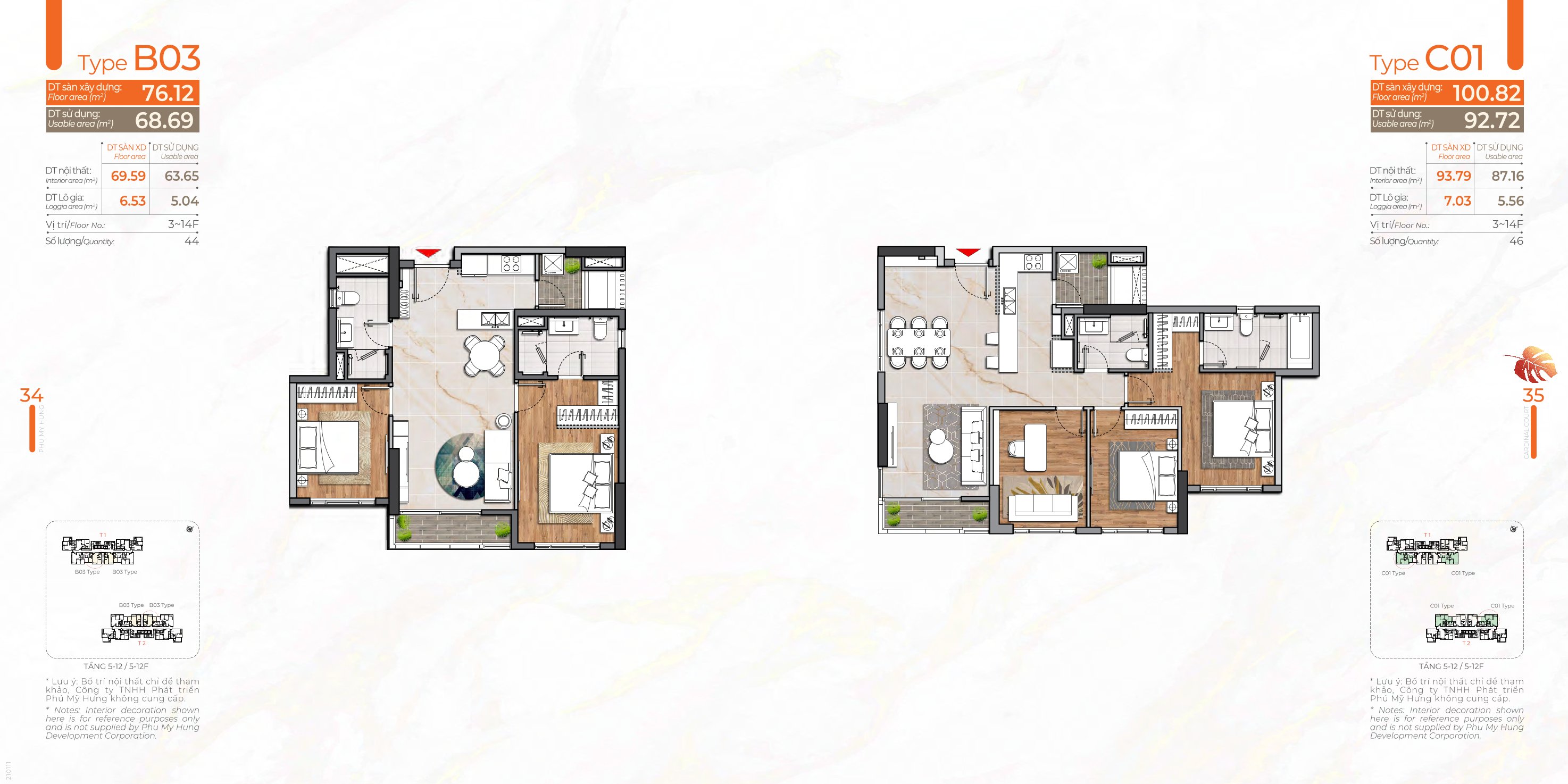 - 3 Phòng ngủ: 46 căn, diện tích 100,82m².