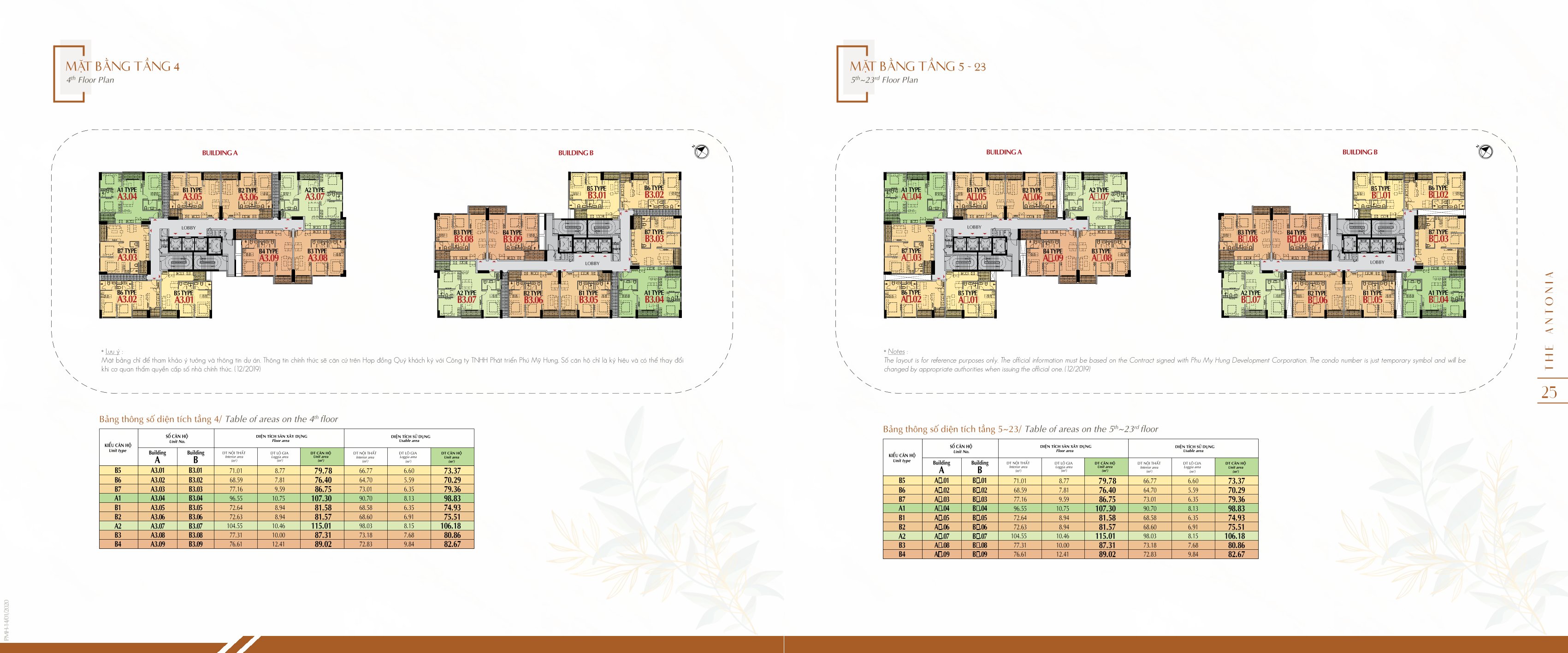 Mặt bằng tầng 4 và Tầng 5 đến tầng 23 của dự án căn hộ The Antonia