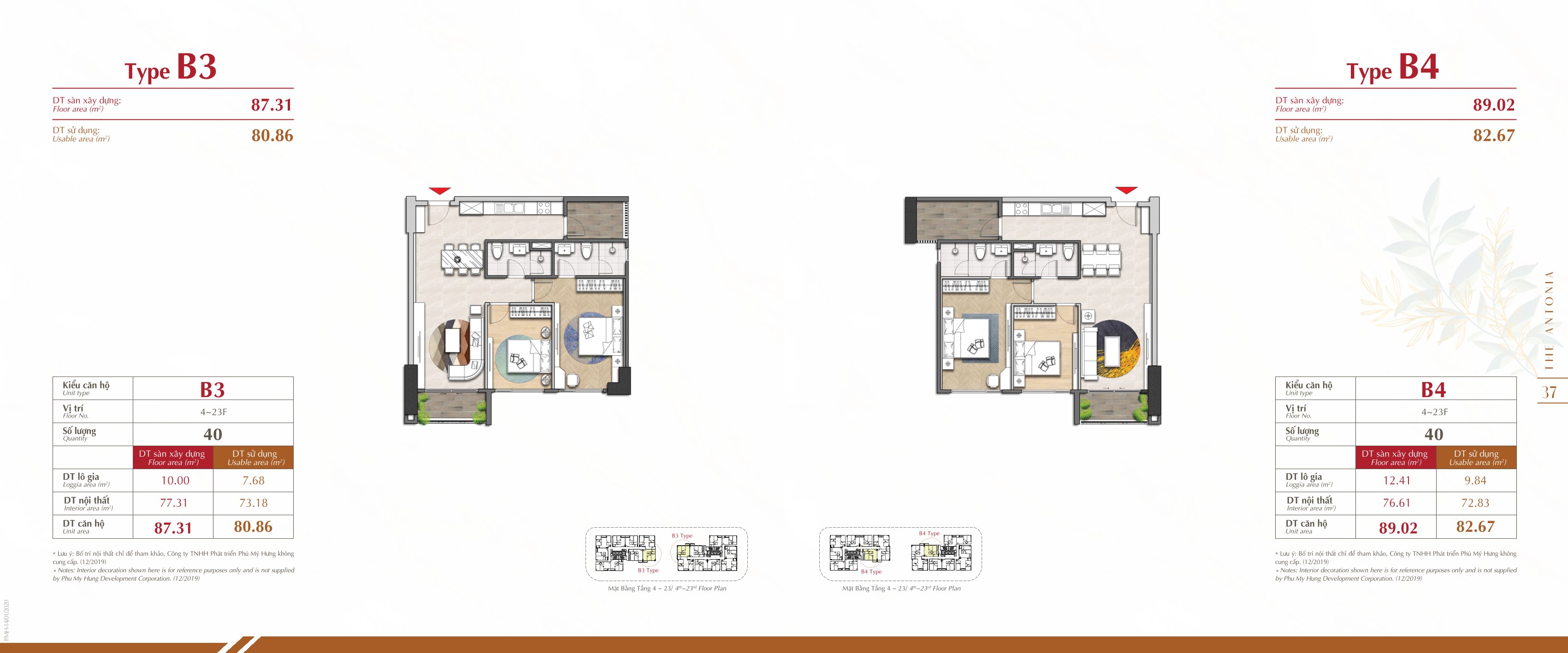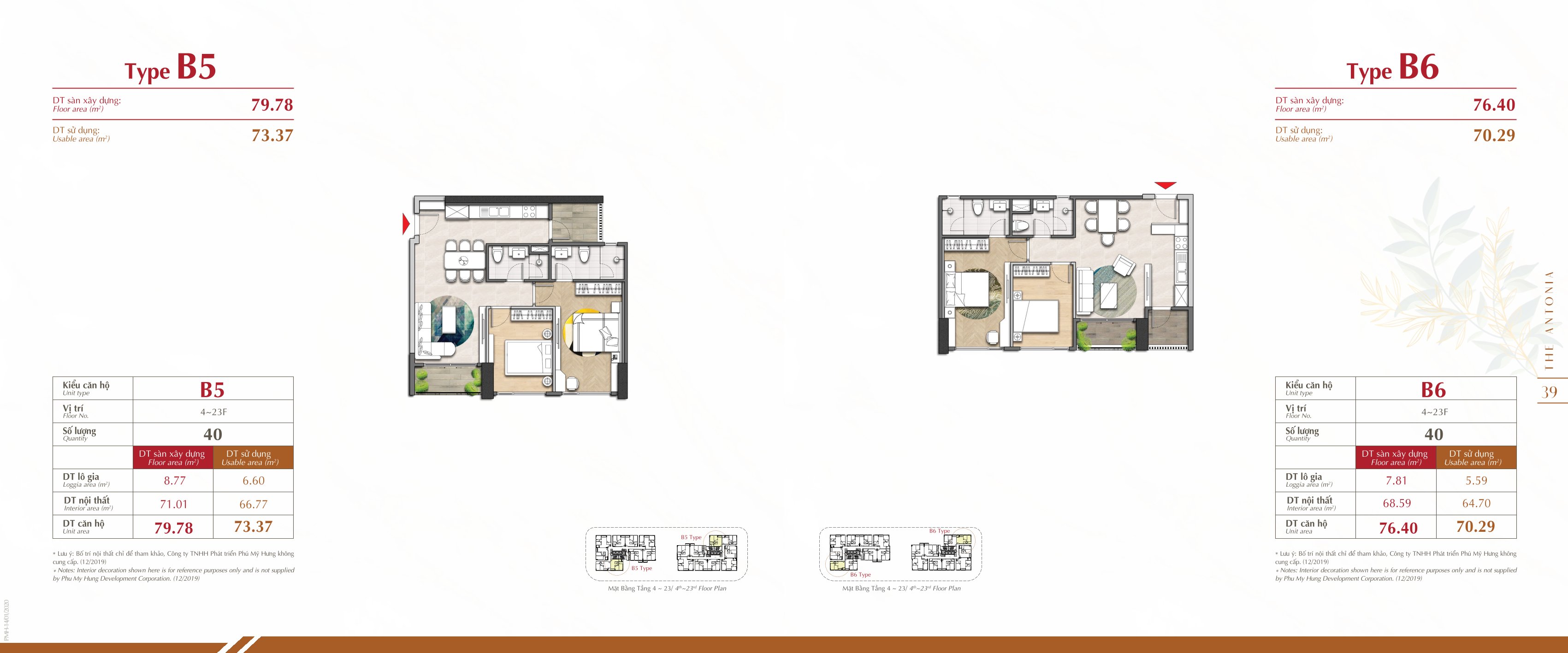 Mặt bằng tầng 4 và Tầng 5 đến tầng 23 của dự án căn hộ The Antonia