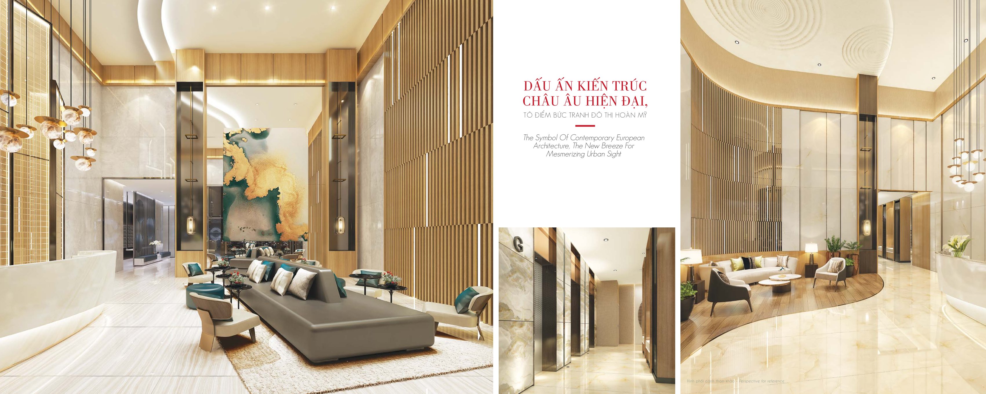 Sảnh đón khách (Lobby) của The Ascentia được thiết kế xa hoa, sang trọng theo cảm hứng từ trường phái Bauhaus, khẳng định đẳng cấp của cư dân.