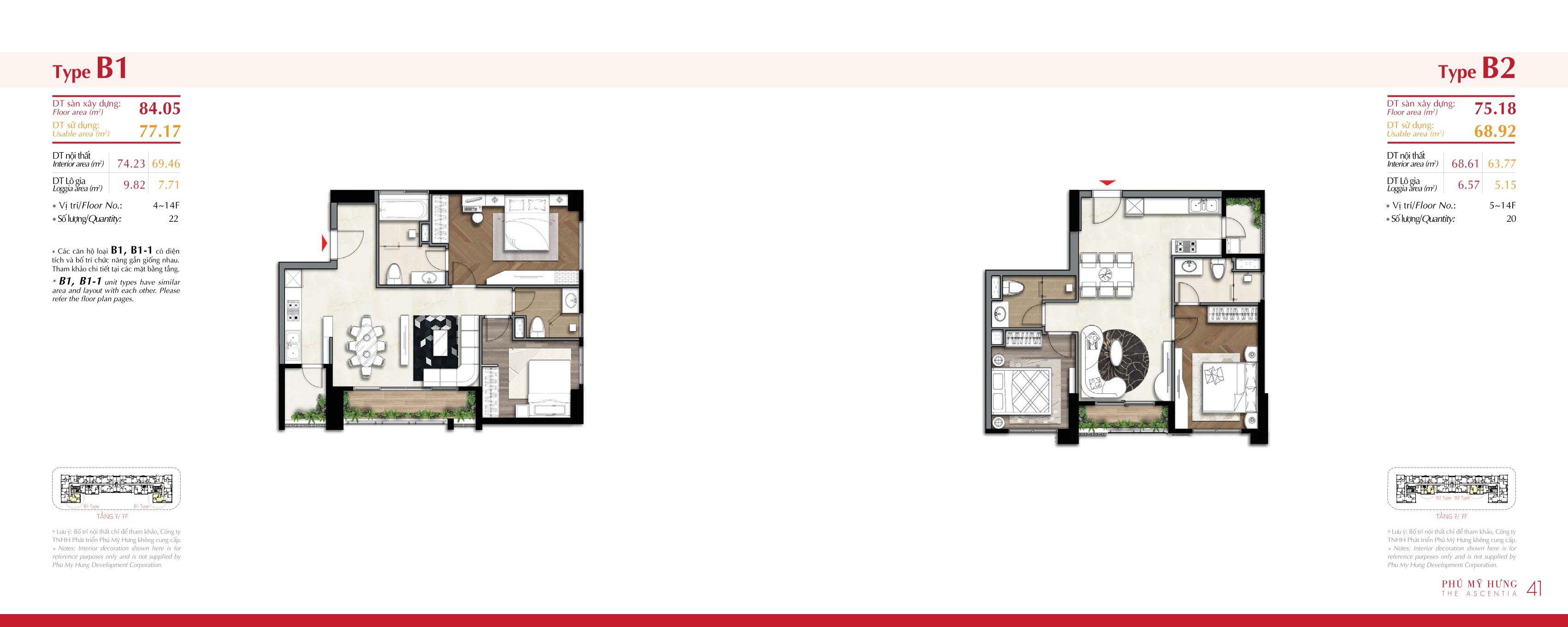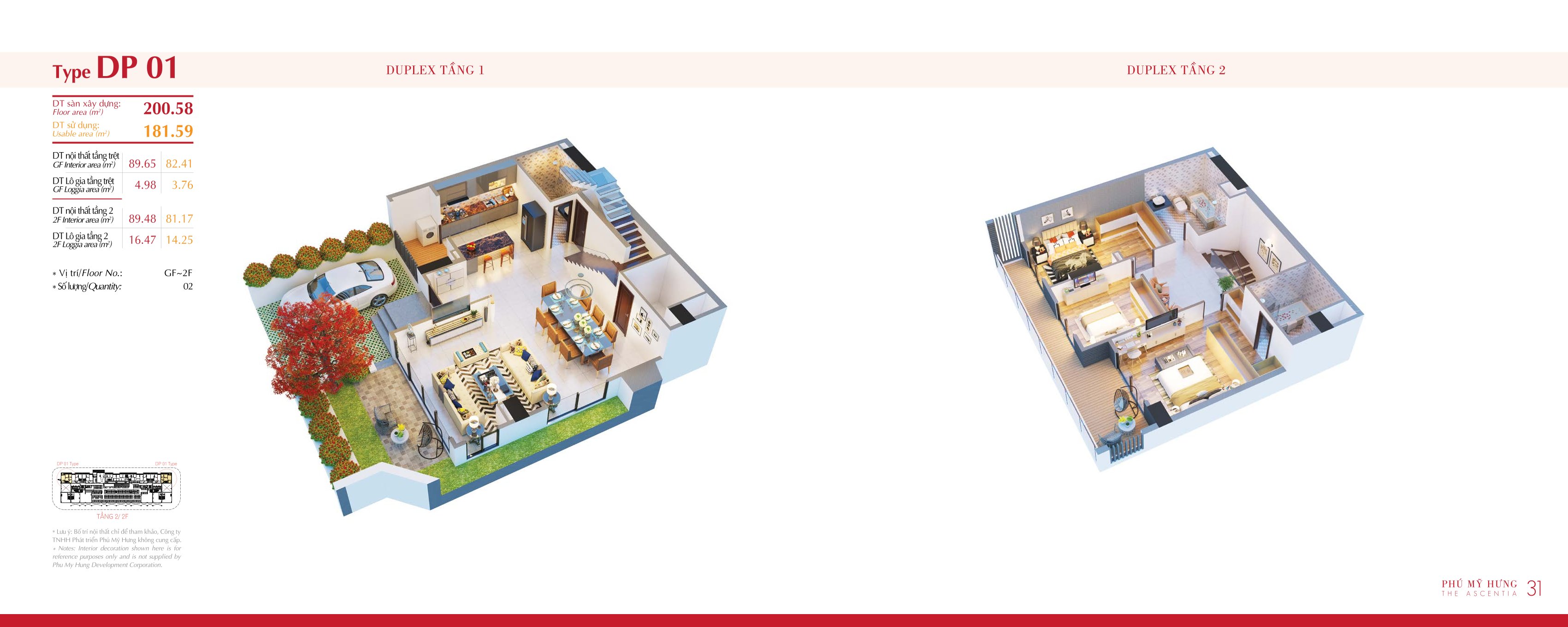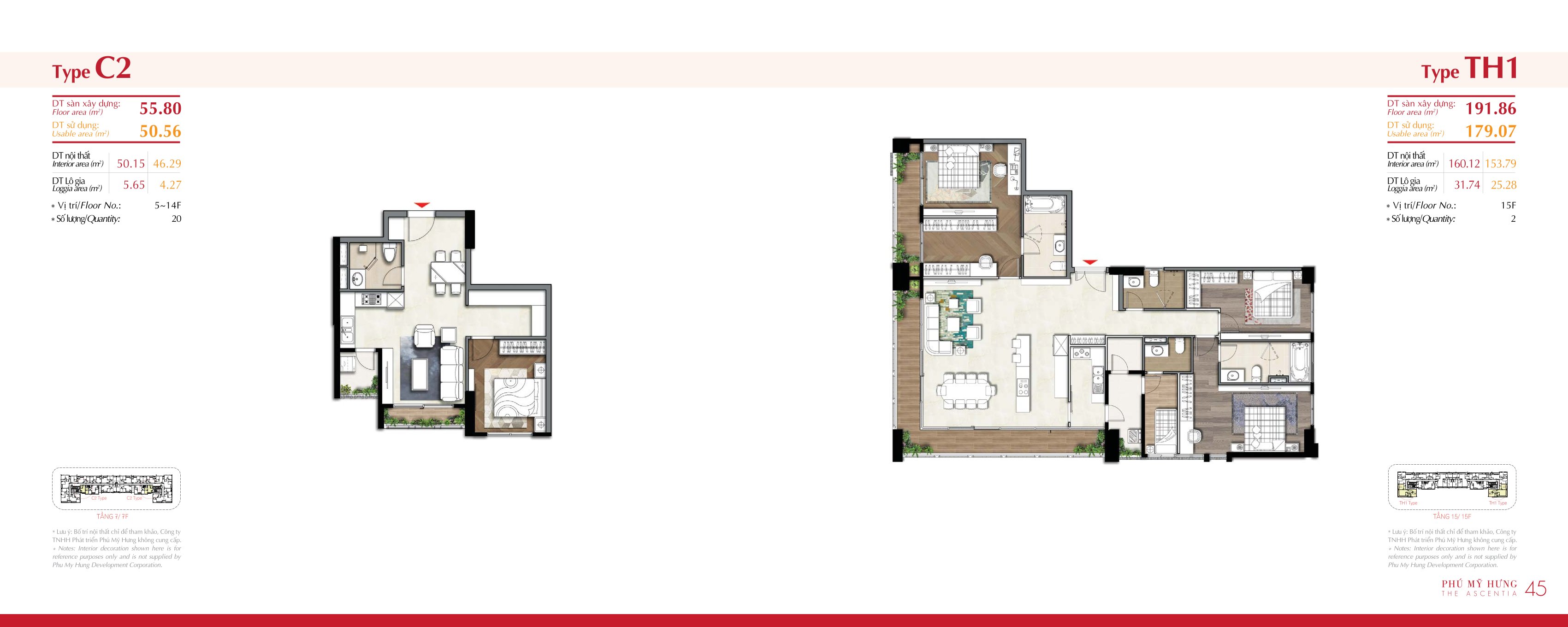The Ascentia cung cấp sự đa dạng hóa sở hữu, từ căn hộ 1 phòng ngủ (48-55m2), 2 phòng ngủ (77-84m2), 3 phòng ngủ (106-108m2), đến các loại hình đặc biệt như Duplex và Tophouse/Penthouse. Đặc biệt, căn hộ sân vườn (tầng 3) là sản phẩm ngày càng hiếm trên thị trường Phú Mỹ Hưng.