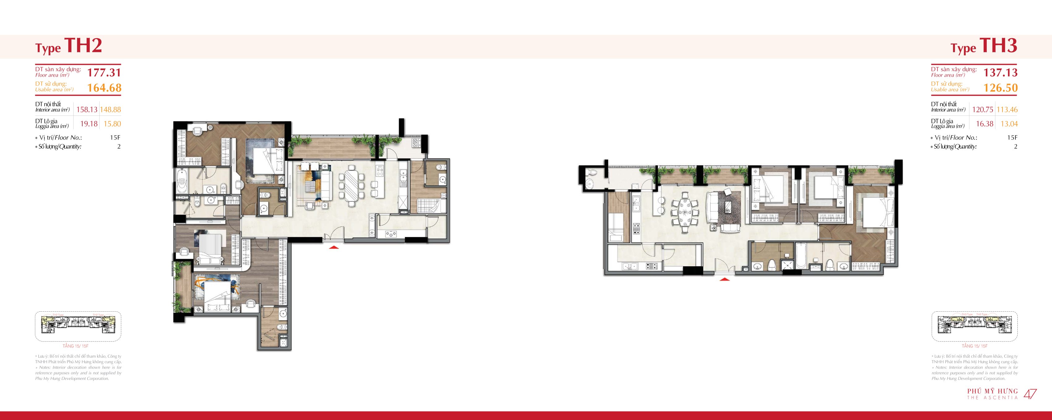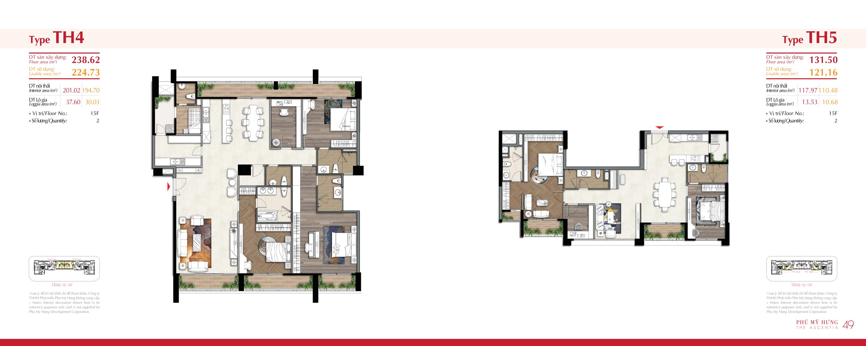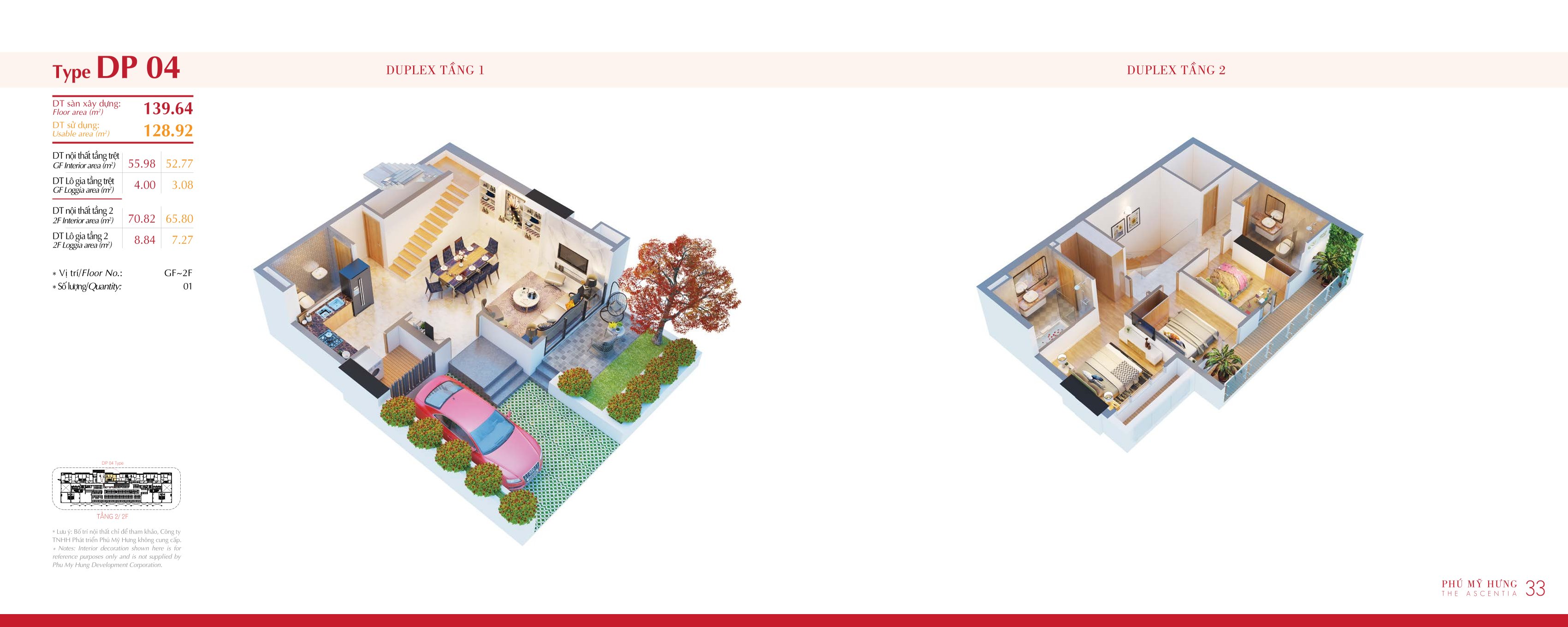 The Ascentia cung cấp sự đa dạng hóa sở hữu, từ căn hộ 1 phòng ngủ (48-55m2), 2 phòng ngủ (77-84m2), 3 phòng ngủ (106-108m2), đến các loại hình đặc biệt như Duplex và Tophouse/Penthouse. Đặc biệt, căn hộ sân vườn (tầng 3) là sản phẩm ngày càng hiếm trên thị trường Phú Mỹ Hưng.