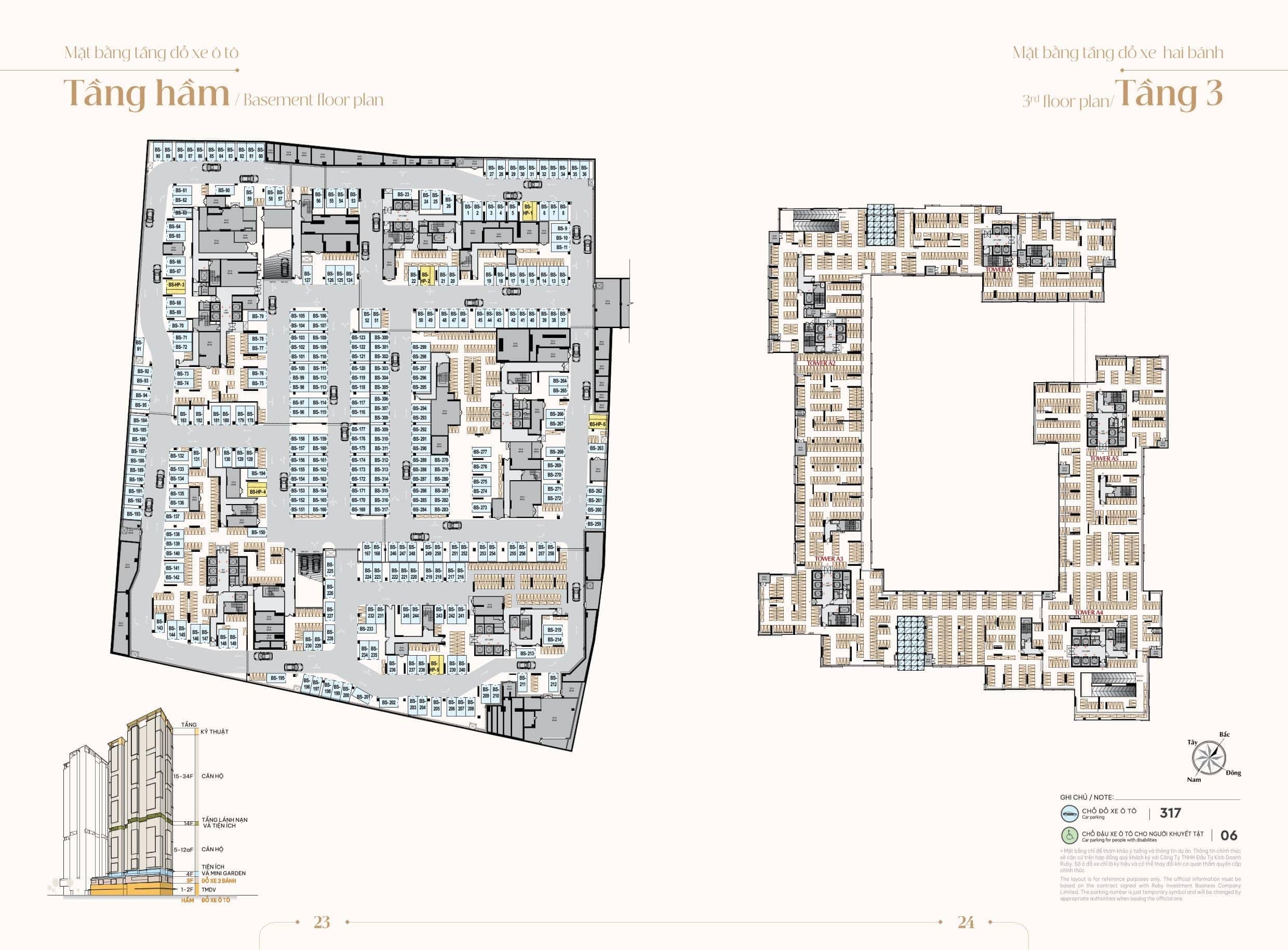 - Tầng hầm: Khu vực đỗ xe hơi