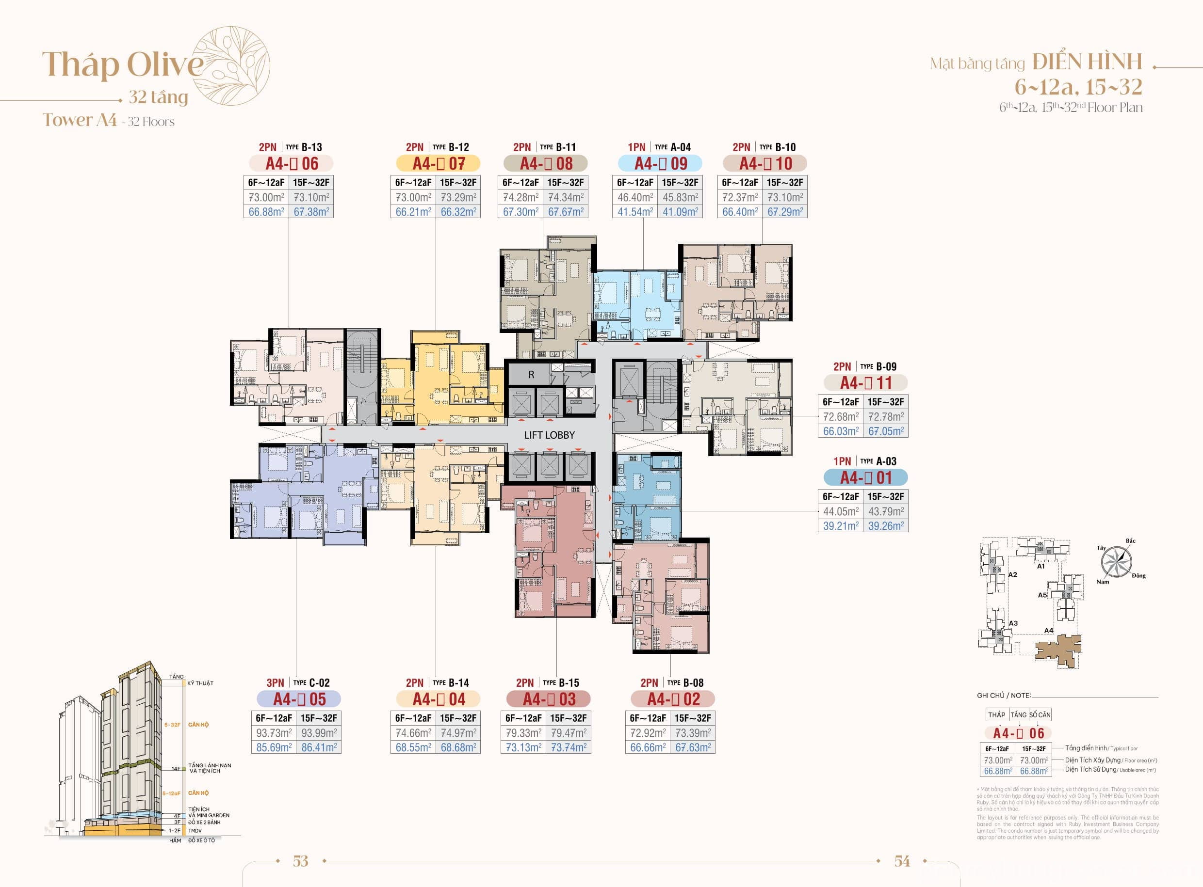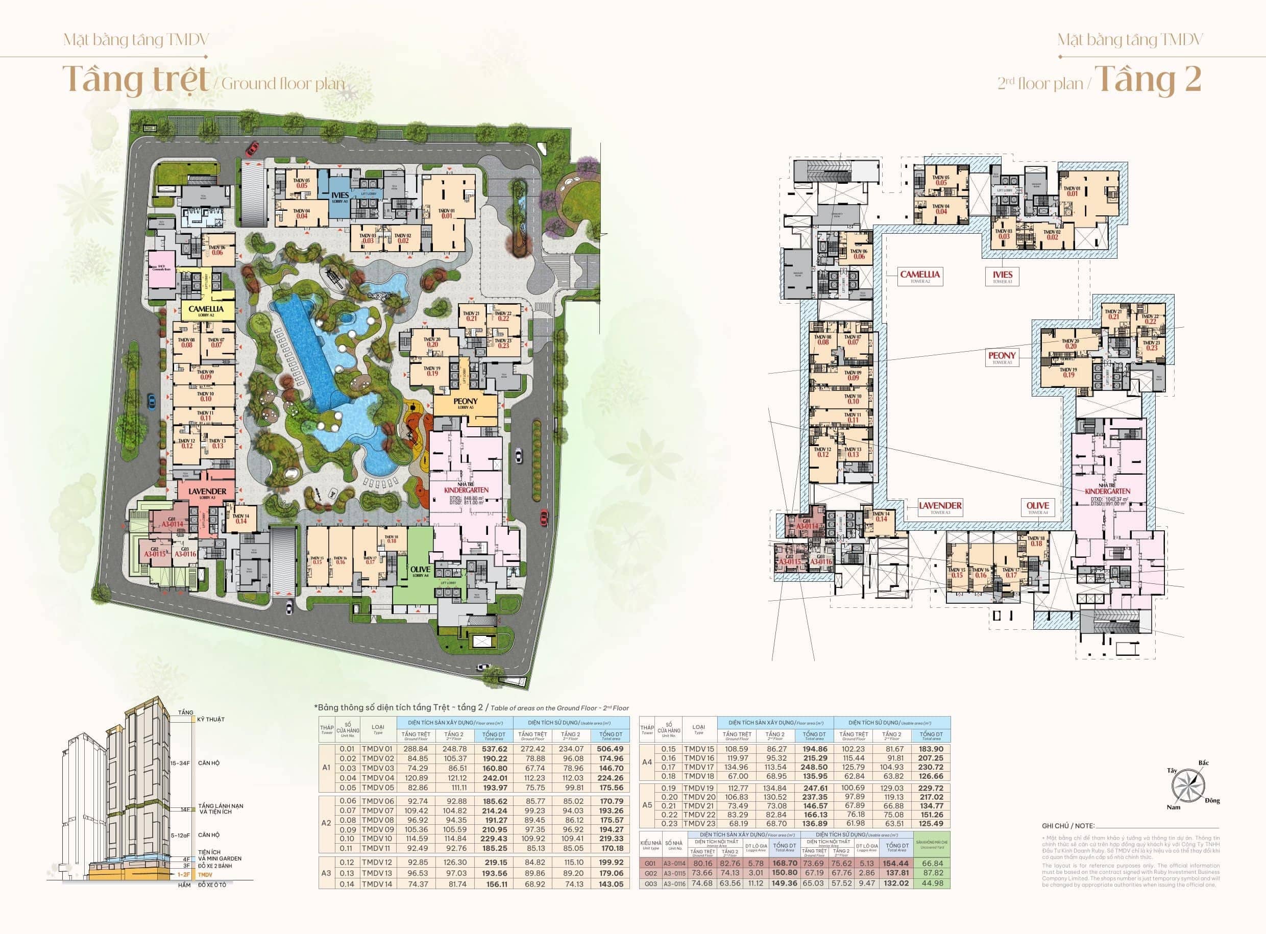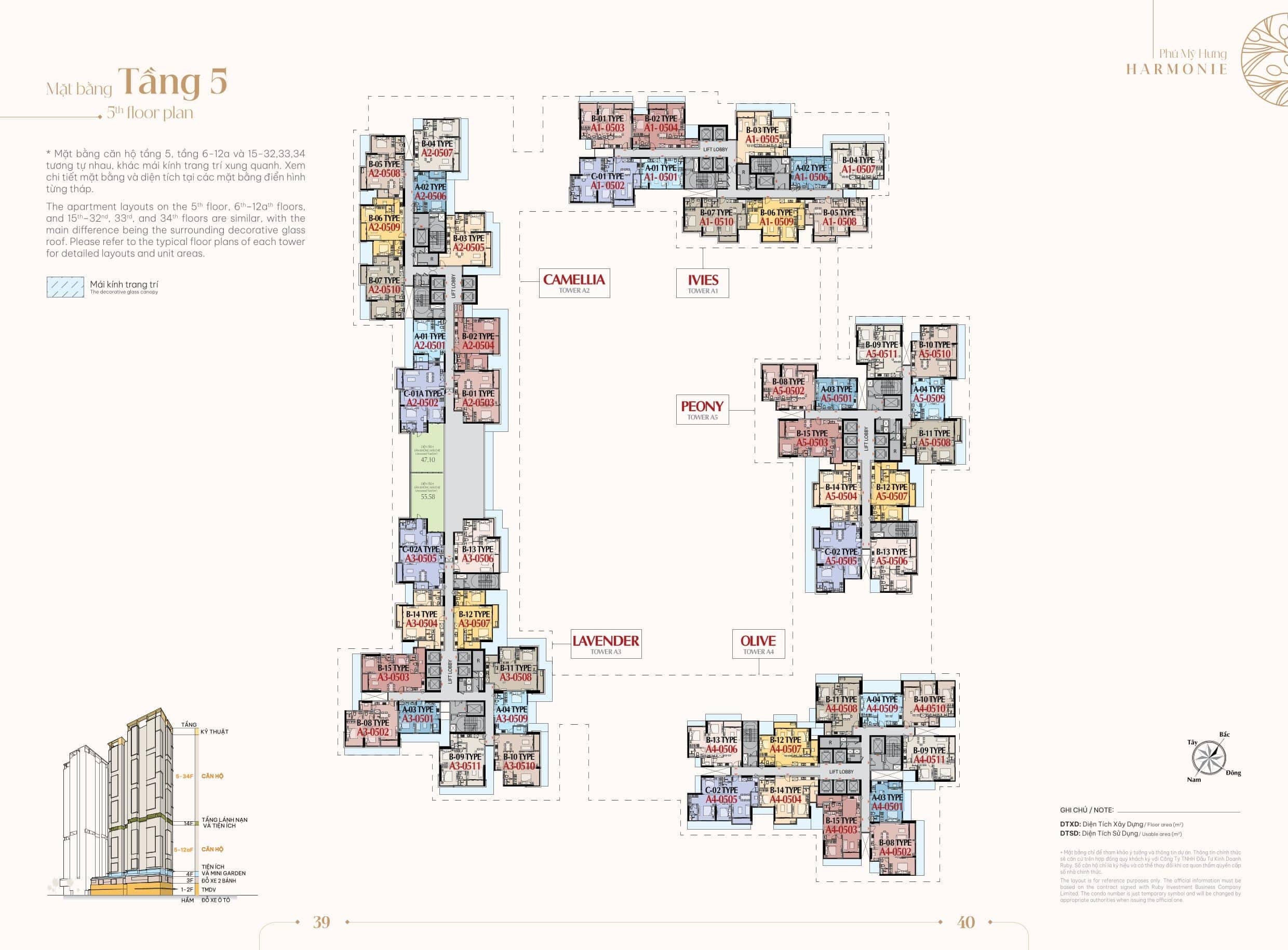 Dự án gồm 5 tòa tháp có tên gọi lần lượt là: Camelia, Lavender, Olive, Ivies và Peony. Trong đó, hai tòa Camelia và Lavender dự kiến sẽ được mở bán đầu tiên vào tháng 3/2026
