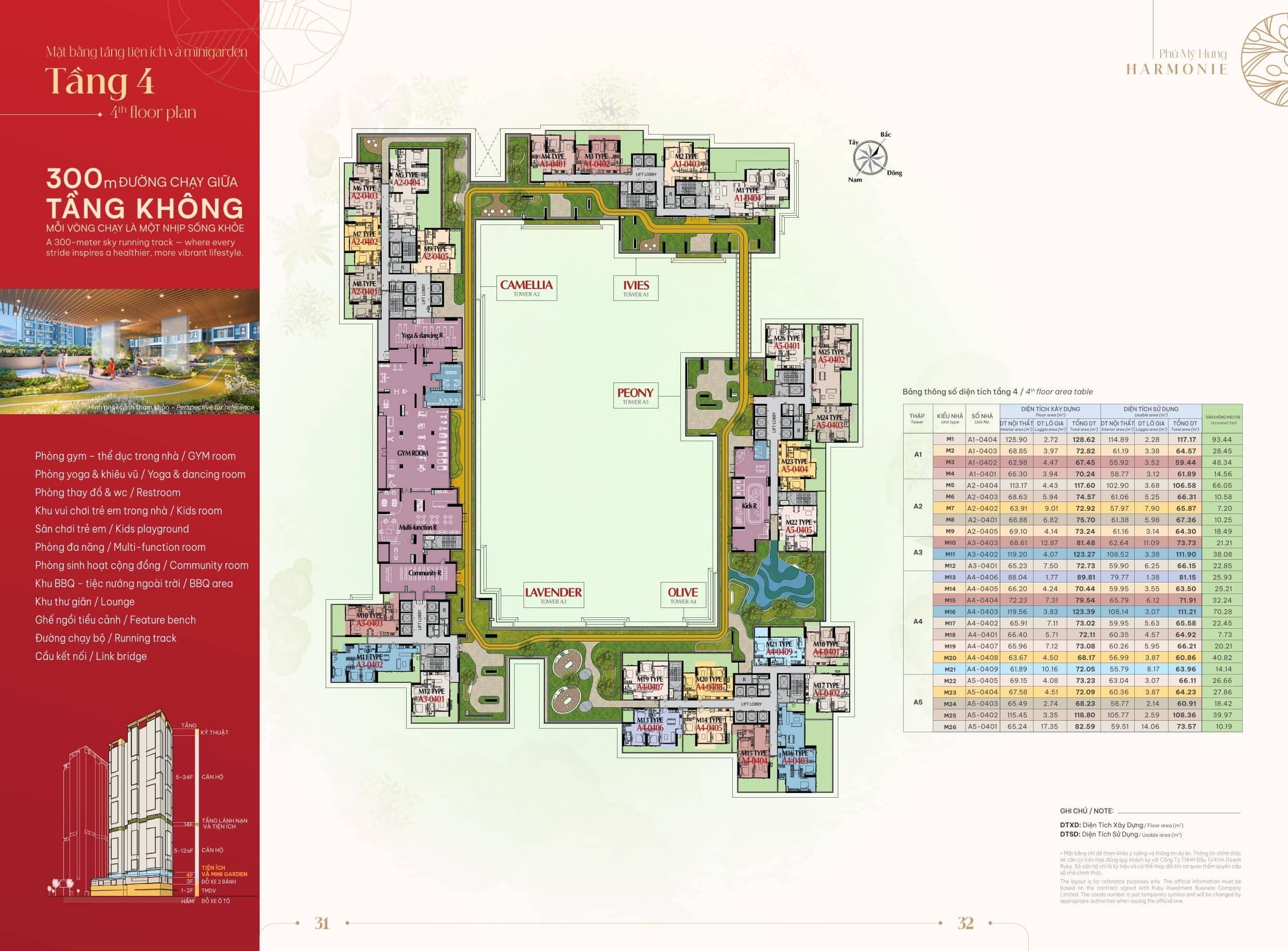 - Tầng 4: Khu vực tiện ích nội khu dành riêng cho cư dân và vườn treo Sky Garden (tại tầng 4),.