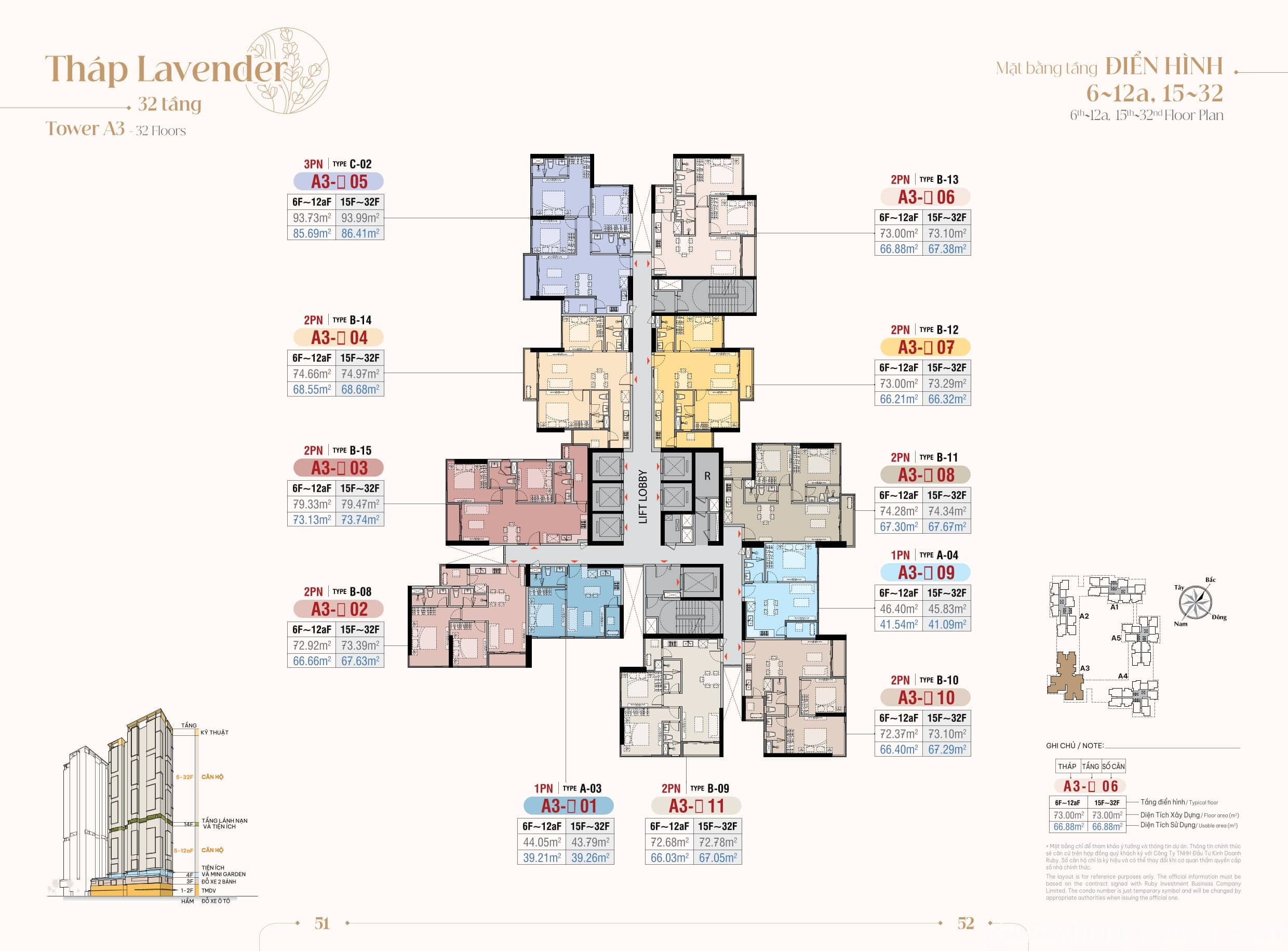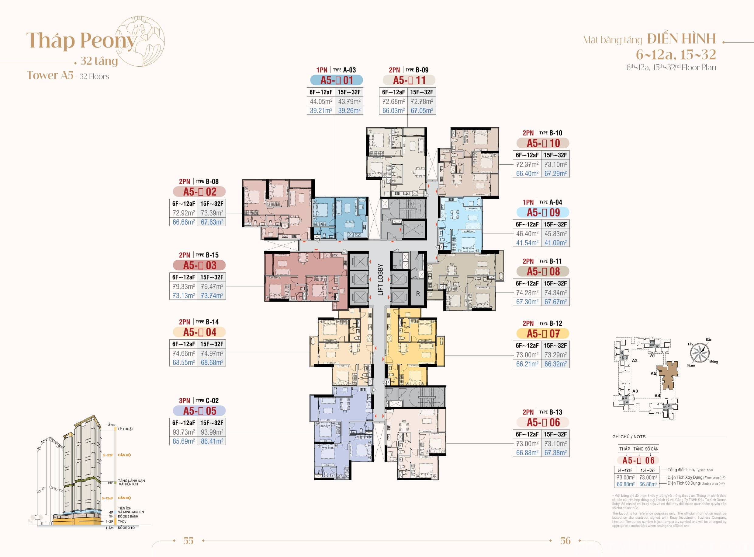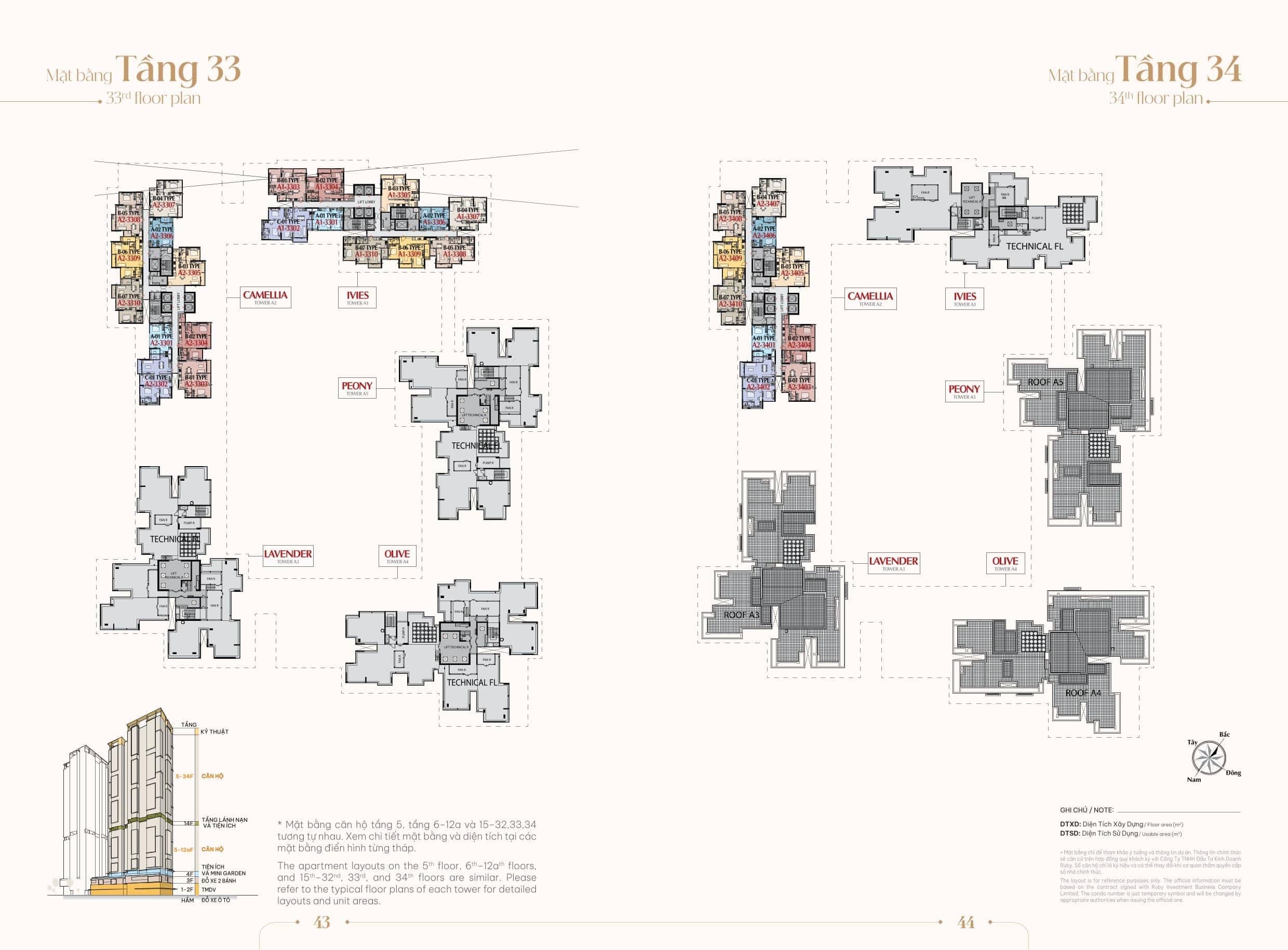 - Tầng 5 – 32, 33, 34: Tầng căn hộ điển hình.