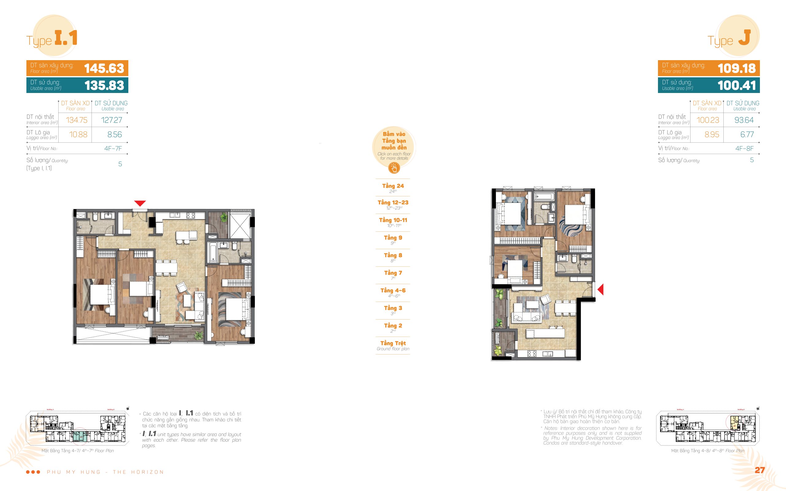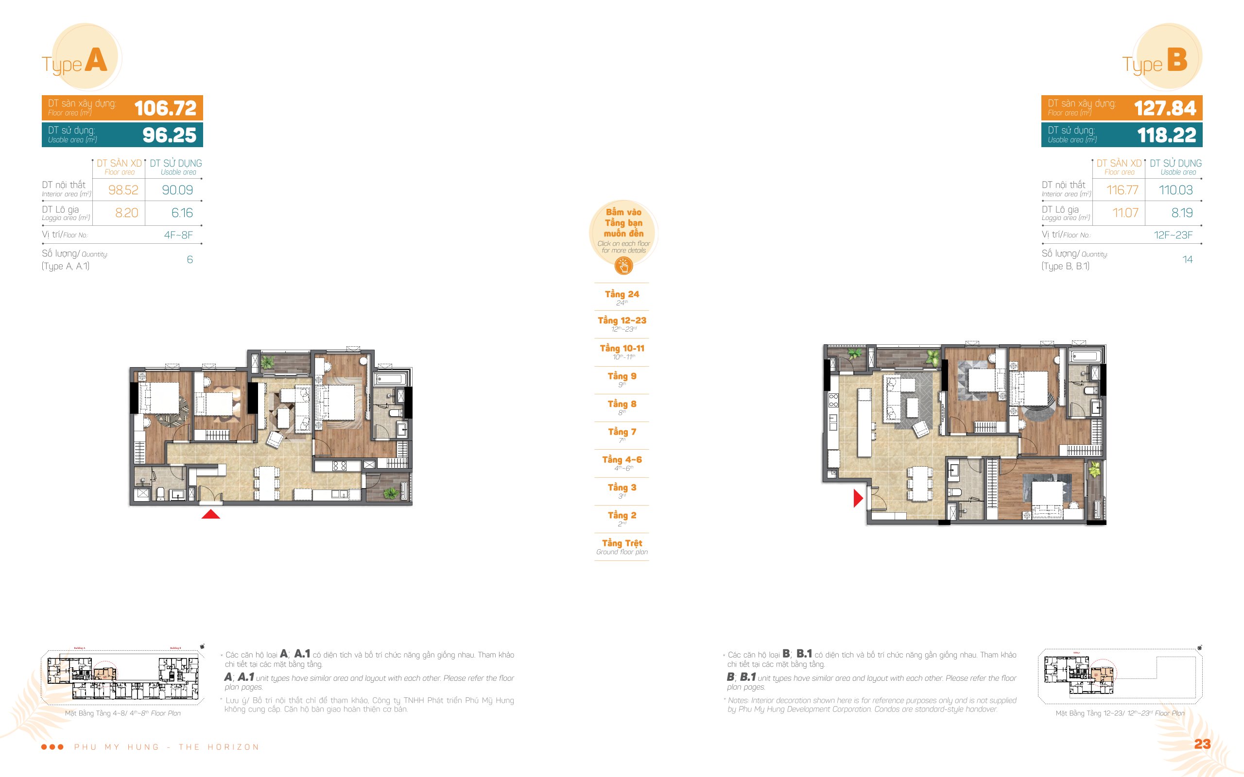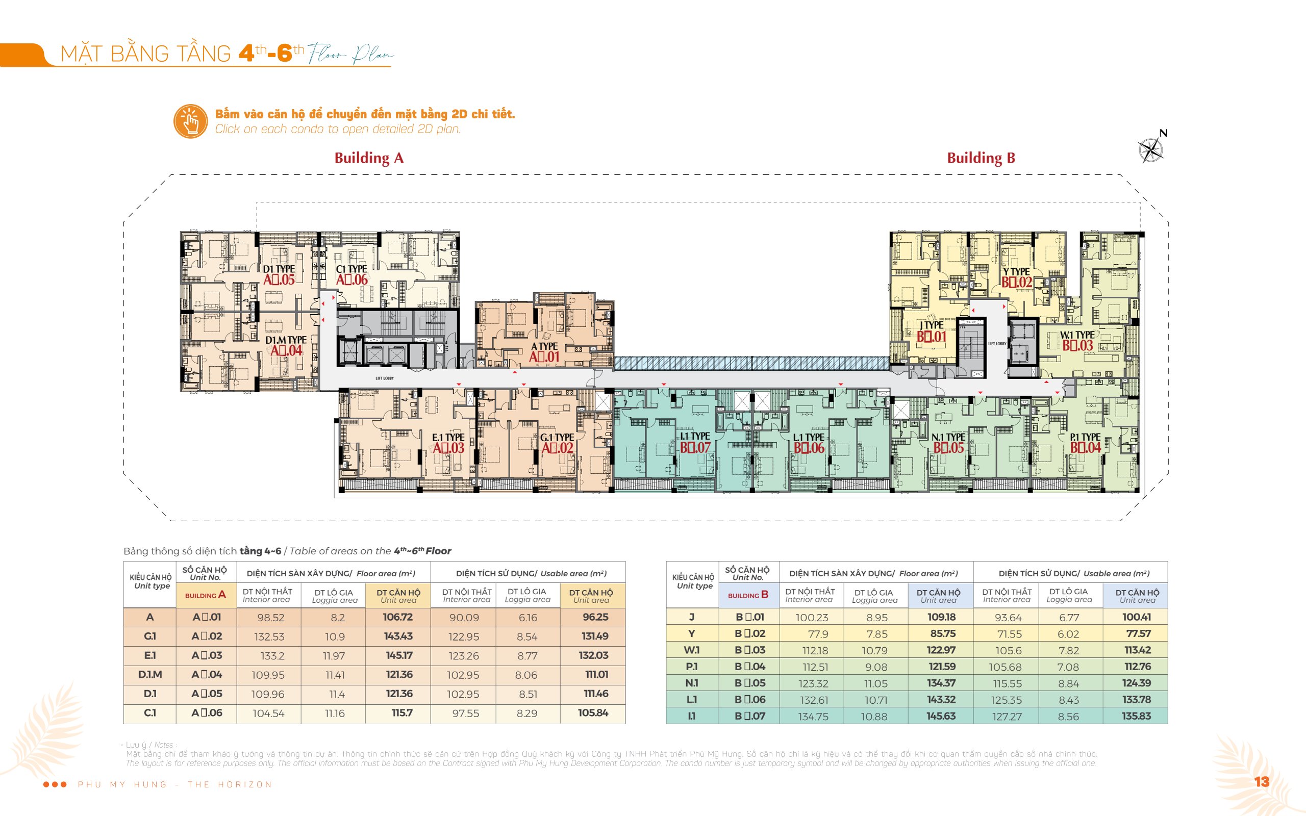 MẶT BẰNG THIẾT KẾ CÁC TẦNG CĂN HỘ DỰ ÁN THE HORIZON PHÚ MỸ HƯNG