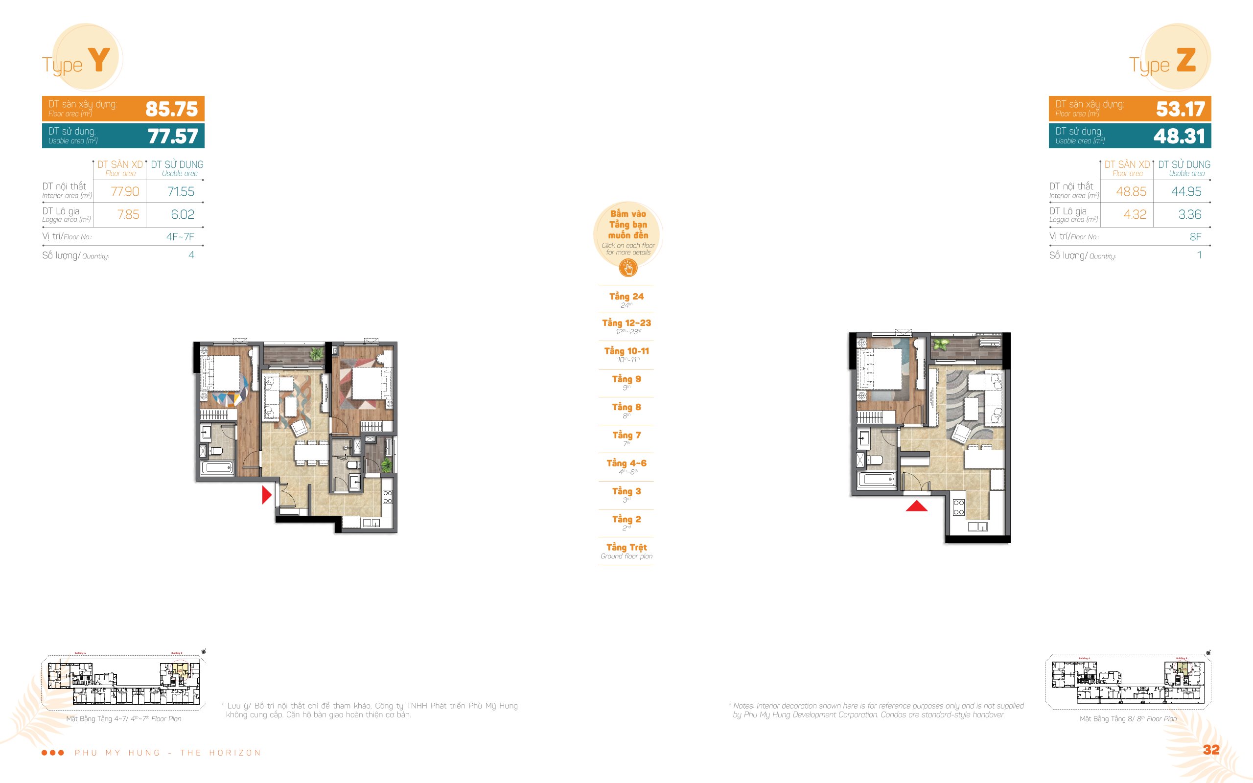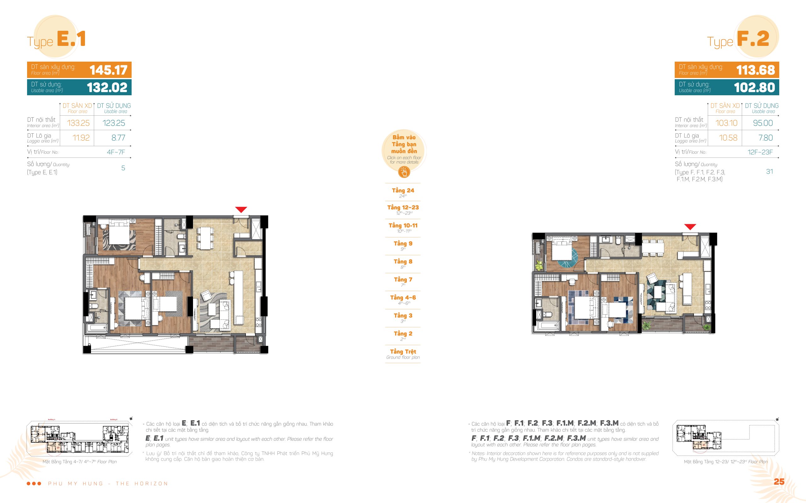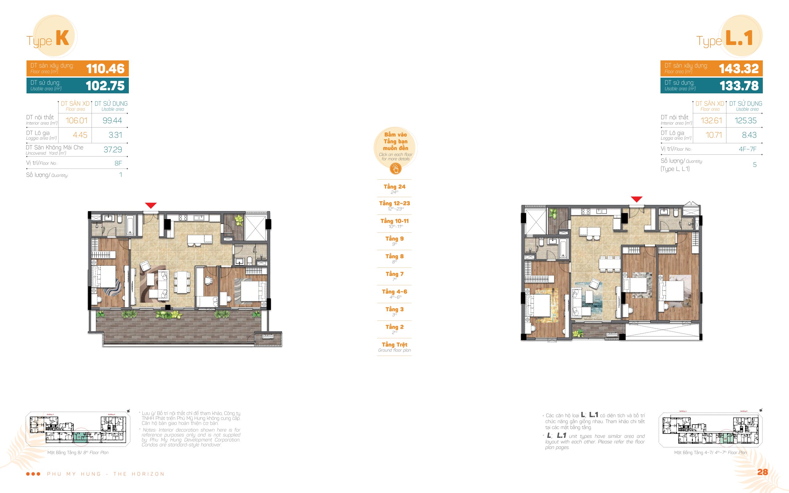 MẶT BẰNG THIẾT KẾ CÁC TẦNG CĂN HỘ DỰ ÁN THE HORIZON PHÚ MỸ HƯNG