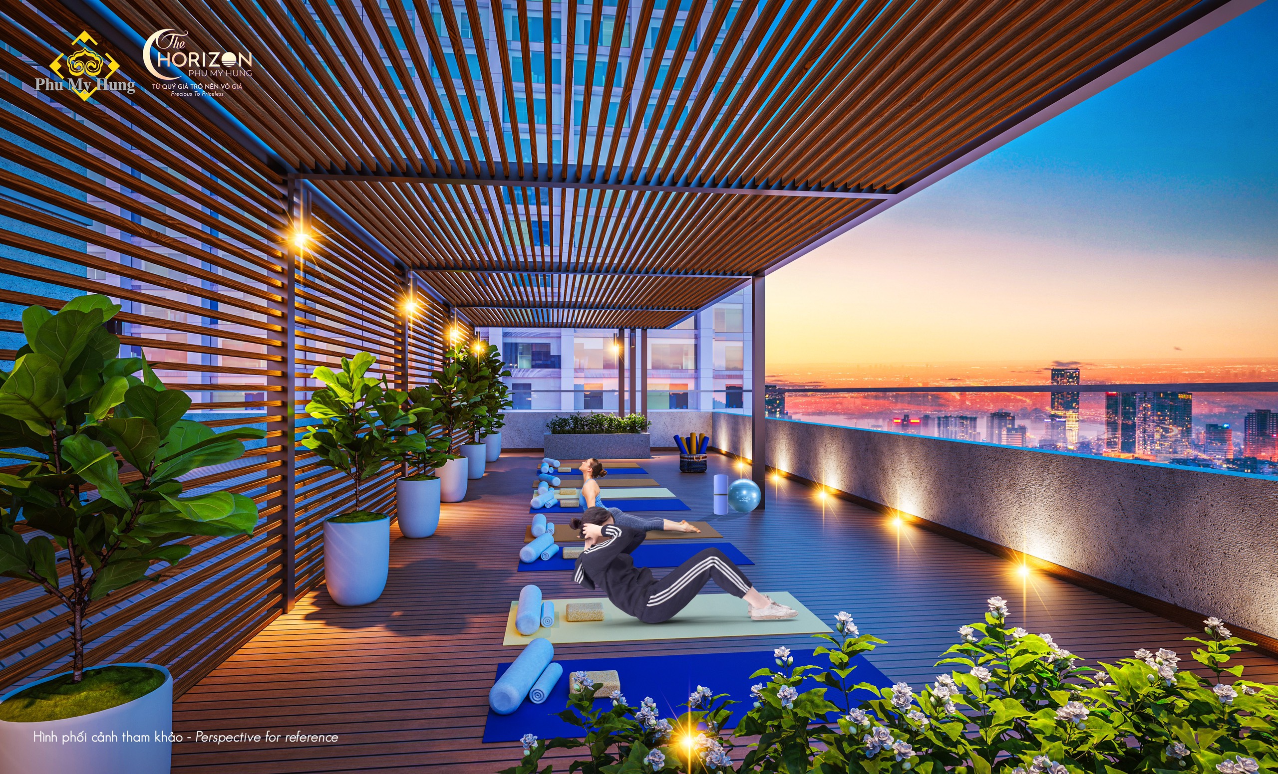 Rèn luyện sức khỏe: Phòng tập Gym – Yoga đa năng được trang bị đầy đủ thiết bị hiện đại, có view nhìn trực diện hồ bơi hoặc toàn cảnh thành phố. Khu Yoga ngoài trời thoáng đãng, ngập tràn ánh sáng tự nhiên.