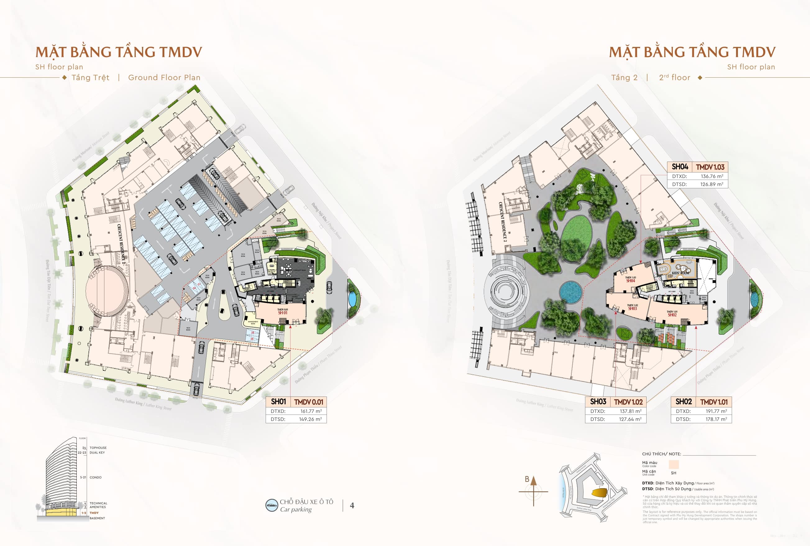 - Diện tích: 2 căn diện tích 254-256m² (Penthouse) và 2 căn diện tích 118-124m2 (Tophouse)
